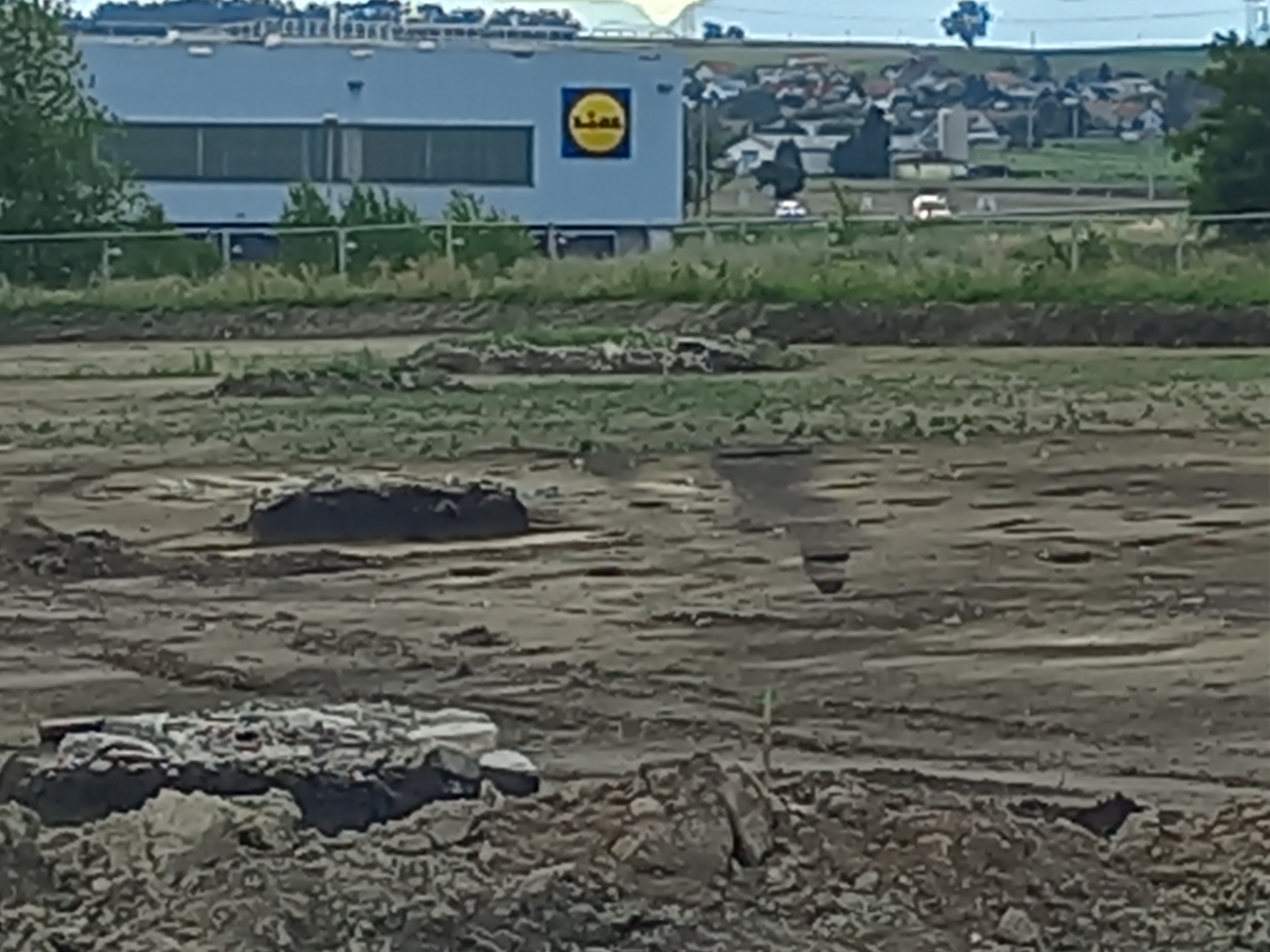 - Die aktuellen Erfahrungen aus Müllendorf lassen den Fund von 1939 aber in neuem Licht erscheinen: Vielleicht liegt hier das gleiche Phänomen wie beim Straßenabschnitt in Müllendorf vor, wo die Straße auch nach wenigen Metern „abreisst“? Wenn 1939 in Steinbrunn beim Hartl eine Römerstraße gefunden wurde, dann wäre es wahrscheinlich, dass es sich um dieselbe Römerstraße wie in Müllendorf handelt, die Straße also von Müllendorf kommend entlang des Sulzbaches und dann entlang des Hartlwaldes bis nach Neufeld verlief.